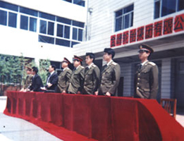 2001年公司成立民兵營(yíng),市區(qū)有關(guān)領(lǐng)導(dǎo)參加驗(yàn)兵儀式